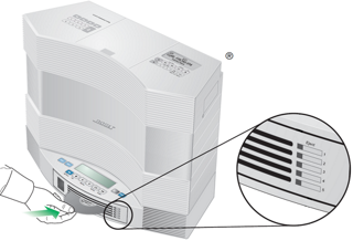 To load a CD into the changer, insert one edge of the disc into an empty slot and push the disc all the way in. The LED indicator to the right of each slot indicates the status.